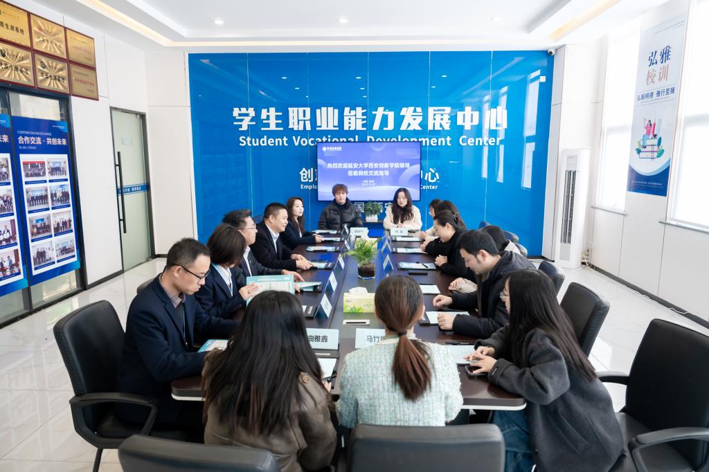 白雪对西安弘雅学校的热情接待和经验分享表示衷心感谢,并从学校办学定位、学科建设、人才培养、社会服务、毕业生就业情况等方面做了详细介绍。她指出,西安弘雅学校在产教融合、特色办学方面与国家教育改革发展方向的高度契合,其先进经验为高校深化教育教学改革、提升人才培养质量提供了宝贵借鉴。她强调,学校始终坚持以学生为中心,把高质量就业作为人才培养的核心目标,希望以本次走访为契机,与西安弘雅学校建立长期稳定、深度融合的战略合作关系。随后,双方在实习实训基地建设、联合育人、就业创业指导等方面达成共识,为后续推动校企协同育人、拓宽毕业生就业渠道、提升就业质量奠定了坚实基础。