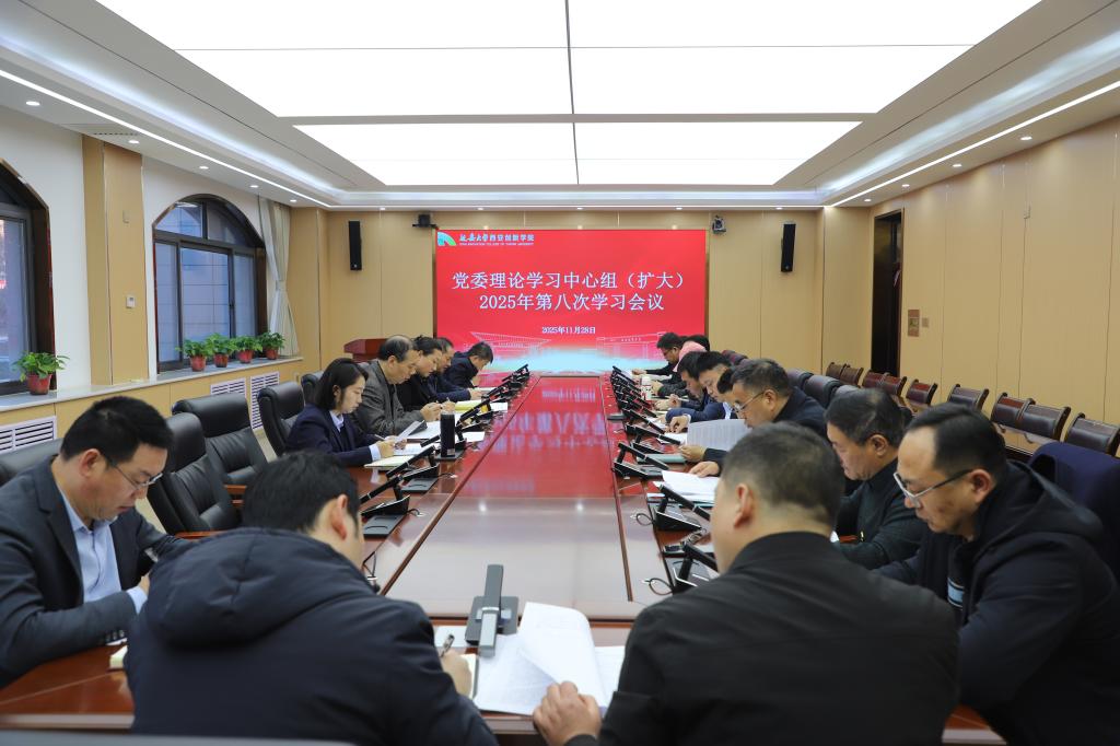 本网讯 11月28日下午,我校召开2025年第八次党委理论学习中心组(扩大)集体学习会议。全体校领导,党委委员,各党总支书记、副书记,直属党支部书记,党群工作部、学工部、团委负责人参加集体学习。党委书记白雪主持学习会议。
