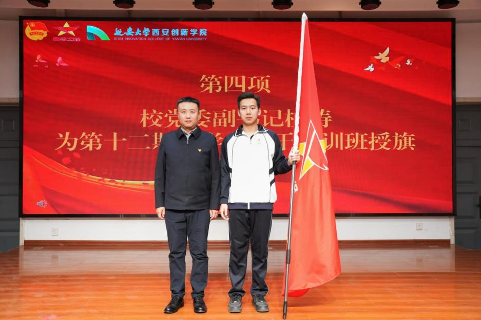 校党委副书记杭涛为培训班授旗,飘扬的班旗不仅是身份的象征,更是我校青年骨干传承红色基因、践行初心使命的精神旗帜。