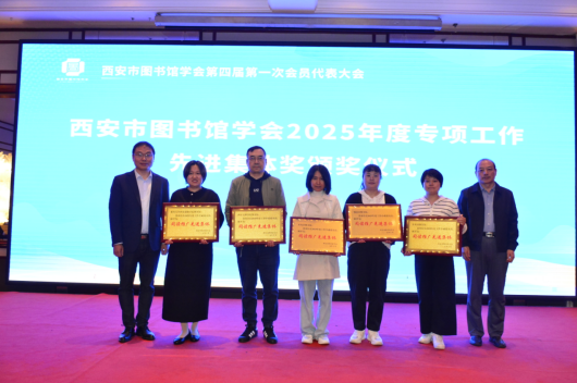 本网讯 10月14日,西安市图书馆学会第四届第一次会员代表大会顺利召开,会上宣读了学会2025年度专项先进集体表彰决定,我校图书馆凭借丰硕的阅读推广成果与创新实践,荣获“2025年度西安市图书馆学会阅读推广先进集体”称号。这一荣誉是对我校图书馆长期深耕阅读推广领域、积极服务师生读者的充分肯定。