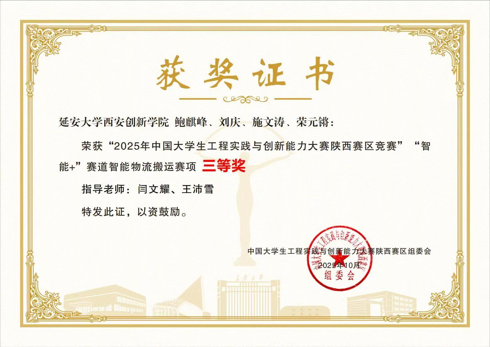 本网讯 近日,2025年中国大学生工程实践与创新能力大赛(省赛)圆满落幕。我校数据科学与工程学院参赛队伍在激烈角逐中脱颖而出,荣获“智能物流搬运”赛项三等奖,实现了我校在该项赛事中的“零突破”,为学校学科竞赛版图增添了浓墨重彩的一笔。