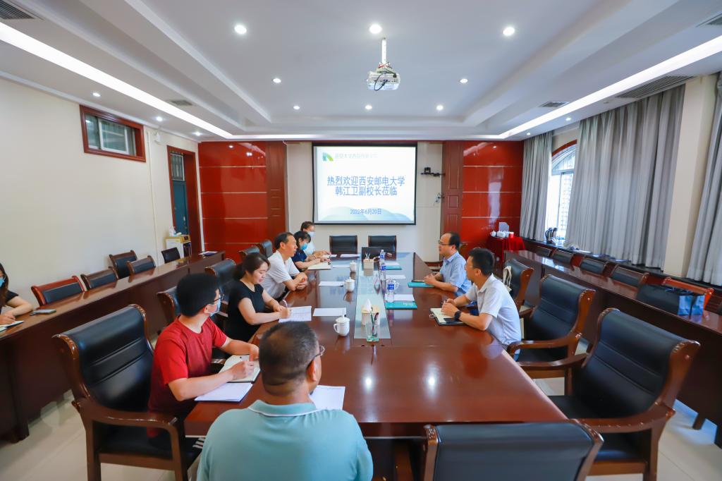 韩江卫介绍了西安邮电大学办学情况,表示近年来西安邮电大学研究生培养质量不断提升,硕士毕业生受到用人单位的广泛好评,希望通过此次调研交流,进一步加强两校在人才培养、科学研究、成果转化等方面的交流合作,实现优势互补、互惠共赢。